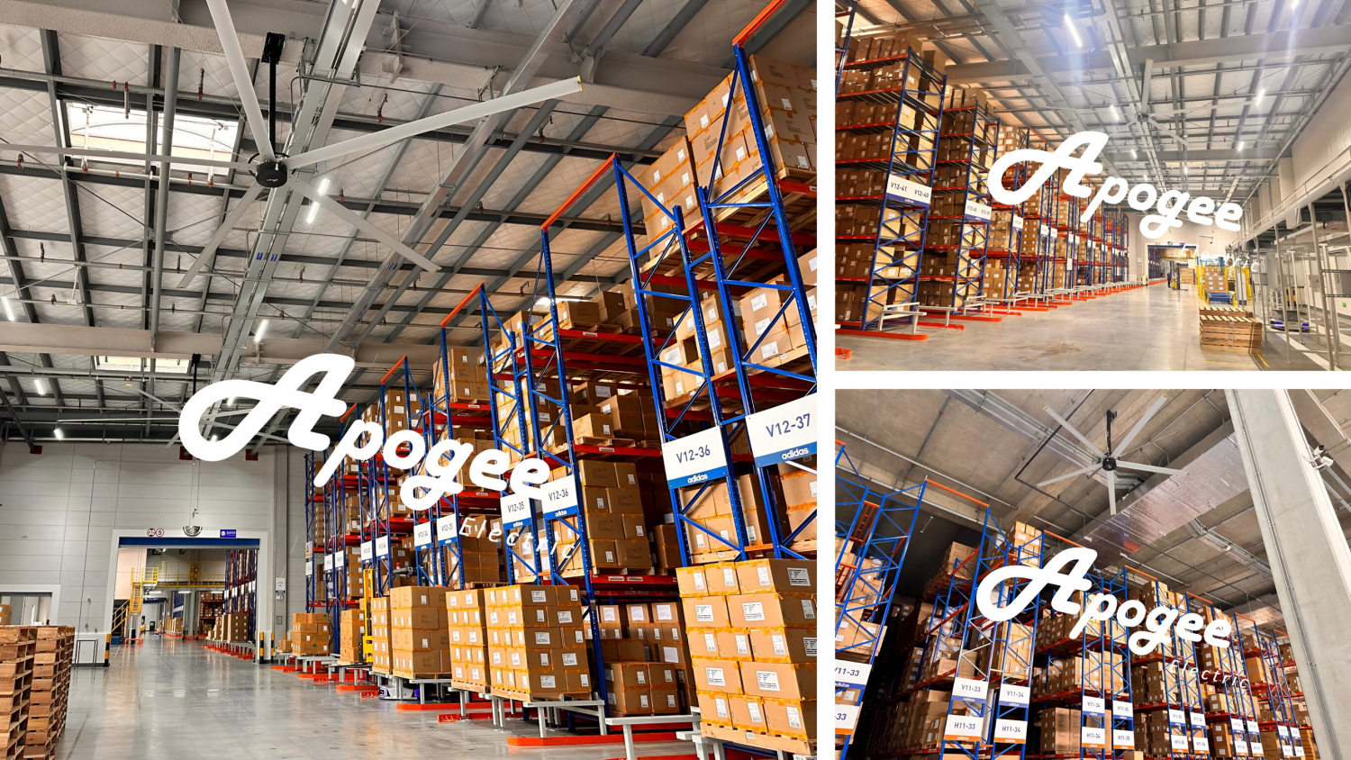 Adidas addressed these challenges head-on by installing hundreds ot Apogee HVLS fans throughout its warehouse facilities.These are not your average ceiling fans.